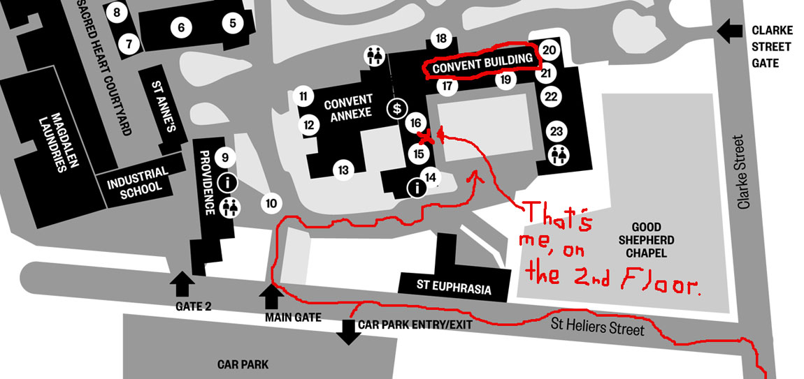 Where? Studio C2:48, 2nd Floor, Main Convent Building, Abbotsford Convent, 1 St Heliers St, Abbotsford. Refer Google Map or Melways Map 44 G5. And check out this fantabulous convent building map…(click to enlarge/download)…