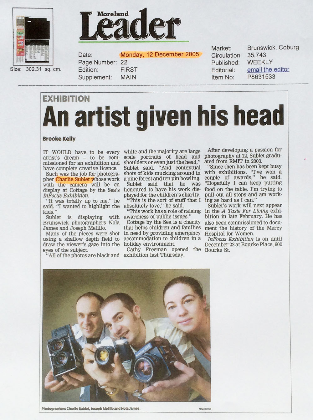 9_CSublet_Pub_0011 ← Previous Next → ‘Mm? Interesting headline – think the sub-editor was having a cheeky day. Coverage of the exhibition about disadvantaged children who’ve had a period of respite at the Cottage by the Sea’s accommodation in Queenscliffe, Victoria. Like Loading...