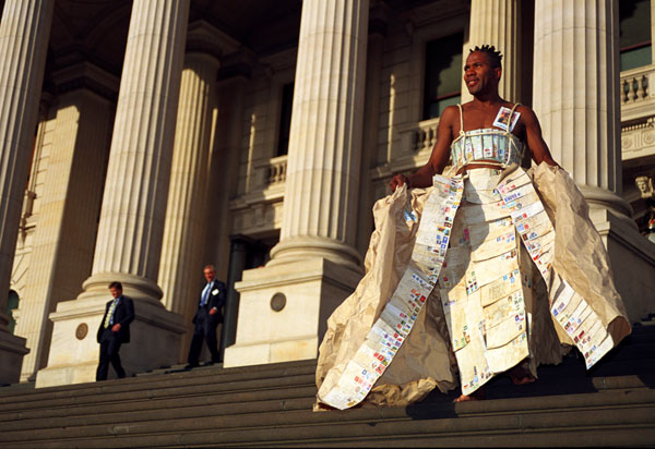← Previous Next → Publicity shot for ‘It’s Only a Piece of Paper’, outside Parliament House, Melbourne, Australia, 2003. A performance about marriage – produced by Colleen Burke and choreographed by Matt Morse. Like Loading...