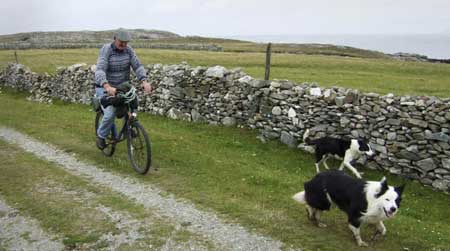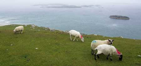Early into the tour the driver interrupts his mumbled, inaudible commentary to answer his mobile phone. With one hand on the wheel and one on the phone we remain stuck in first gear – perhaps not such a bad idea given the narrowness of these one lane roads hemmed in by dry-stone walls and interspersed with random cyclists and pedestrians. After the safe conclusion to his phone call he explains we must make a detour to pick up a VIP. Now stop and think, what type of VIP is likely to visit this small and insignificant isle? The distinguished Prime Minister, heroic footballer or powerful sheep trader? We should’ve guessed – the Guinness Man. He has come from the mainland to clean the lines at the one pub and three hotels where this essential vitamin is dispensed.